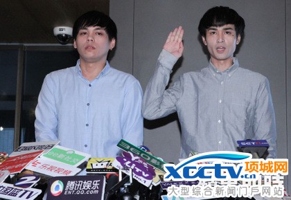 「Under Lover」胡睿儿(右)日前和团员杨琳开记者会道歉。资料照片