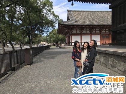 林熙蕾(左)和林心如在京都岚山的渡月桥旅行。林熙蕾提供
