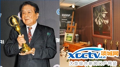 综艺製作人黄义雄追思会于今天举行,现场陈列他的金钟奖座和最爱的油画作品。资料照片、张哲鸣摄