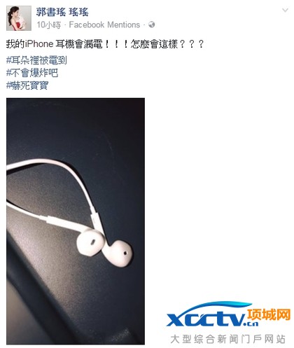 日前三星手机Note 7发生多起燃烧、爆炸的严重事故,被多家航空禁上飞机,没想到这次苹果也出了问题?郭书瑶(瑶瑶)昨表示自己的iPhone耳机漏电,让她使用时当场被电到,不少果粉听闻后相当惊恐。瑶瑶昨晚害怕的说:「我的iPhone耳机会漏电!」称耳朵当场被电到,着急地问耳机不会爆炸吧?粉丝看到后也吓了一跳,要她马上丢掉或退货,但也有网友表示很多原因会导致耳机漏电,或许是耳机没有定期清理造成的,要她别太担心。(陈明慧/综合报导)