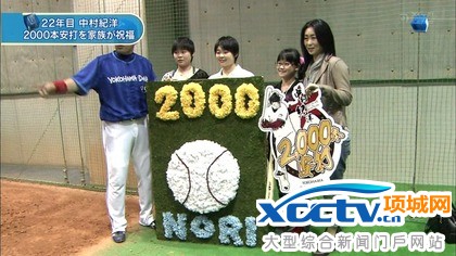 中村纪洋2013年达到日职2千安纪录,老婆和3个女儿到场祝贺。翻摄livedoor网站