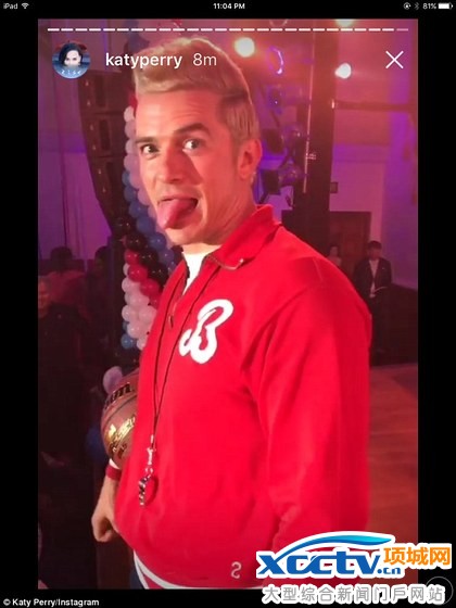 奥兰多布鲁变装成篮球队员,自备篮球投篮,现场气氛超嗨。翻摄凯蒂佩芮IG