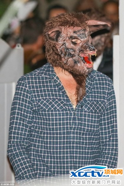 李奥纳多应景戴上面具变身狼人,完全无法辨识,媒体透过他胸口的招牌金项鍊,才发现他是好莱坞大帅哥。翻摄英国《每日邮报》
