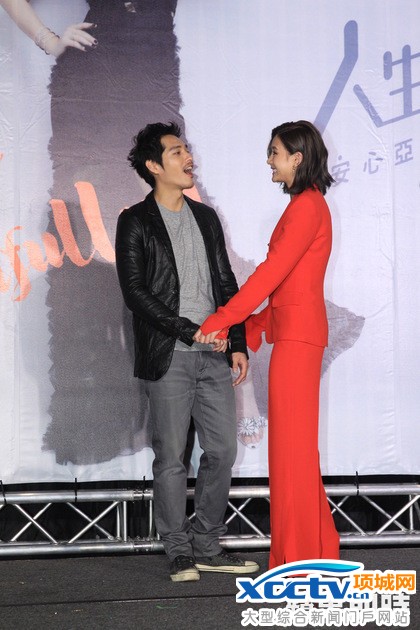 网路红人在记者会上表演,逗得安心亚哈哈大笑。郑孟晃摄