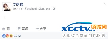 李姸憬在脸书打上「:」,并未多解释什幺。翻摄李姸憬脸书