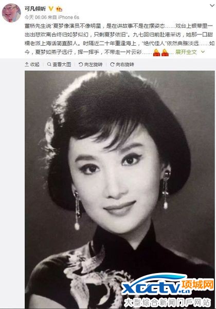 夏梦美貌与智慧兼具。香港《苹果日报》 2015年8月,夏梦已在影坛65年,于香港最后一次公开现身。 刘德华第一部电影《投奔怒海》,和林子祥共演。香港《苹果日报》 去年夏梦应邀出席香港电影资料馆举行的夏梦从艺65载誌庆。香港《苹果日报》 2007年夏梦拄拐杖出席夫婿林葆诚丧礼。香港《苹果日报》 金庸夫妇出席林葆诚丧礼。香港《苹果日报》 夏梦主演《绝代佳人》,由金庸编剧。香港《苹果日报》 长城三公主:前排左三为石慧,后排左一为陈思思.后排左三为夏梦。香港《苹果日报》 1964年《金鹰》是香港影史首部票房破百万的电影。当年首映,长城三公主──夏梦、石慧、陈思思合照。香港《苹果日报》 中国主持人曹可凡今透露夏梦去世消息。翻摄曹可凡微博 夏梦(左)近年和曹可凡合照。翻摄曹可凡微博。 【本网站微信号:综投财经,欢迎关注,了解更多精彩资讯。】