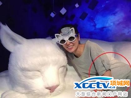 林心如与装置艺术「大白猫」合照,却让6月孕肚现形啦!翻摄腾讯娱乐