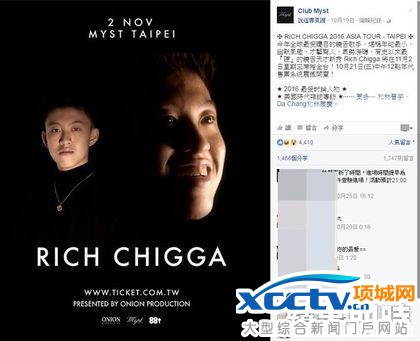 Rich Chigga前天(2号)来台开唱,吸引上百人参加。翻摄脸书