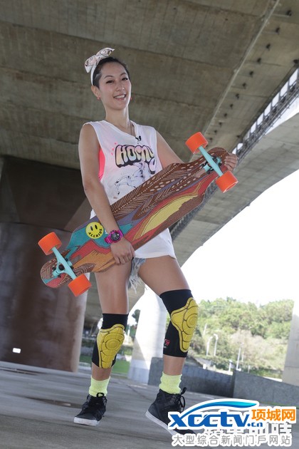 41岁的Gigi(林如琦)外表与个性大喇喇,擅长的运动也如其人充满帅气与速度感,她日前应《苹果》之邀,秀出玩了4年的长板(Longboard),还示範3招花式动作「Dancing」(走板),她爱板成痴,甚至还想抱着滑板睡觉,但怕老公史丹利抓狂才作罢。她说去年因为太过自信,在板上做出360度转圈,结果重心不稳,整个人飞出去,手掌和膝盖都肿胀见红,她回忆起来仍心有余悸,「当时整个身体坏掉,MC有半年没来,医生说是体内被震伤了」,她还因此内分泌失调,整整胖了7公斤。Gigi建议一开始学滑板,要先学会如何摔,「跌倒时,要顺势滚动身体,不要抵抗,才能将伤害降到最低」。Gigi在4年前到日本玩滑雪板,就爱上这项充满速度感的运动,但出国所费不赀,一年只能玩三回,让她十分不痛快,在朋友的建议下,她改玩长板,一玩就上瘾。Gigi介绍挑选长板首先要注意的就是弹性度与硬度,她指出有些板子上会有数字1到3号,1号硬度较强,所以比较适合男性使用。她随后套上护膝,就迫不及待的跳上滑板,一口气秀出「cross step」、「180」、「peter pan」等三个走板动作,看似不起眼的移步,其实得花上不少时间练习。Gigi对拥有的长版很有感情,她说:「女明星收集高跟鞋,我收集滑板。」而她入手的第一张「Loaded」品牌长版,对她而言意义非凡,还陪着她与老公史丹利一同到沖绳拍婚纱照。儘管每一块板子动辄破万元,但从接触到现在,她已经入手6张长板,她害羞透露:「每张新版到手时,都捨不得碰到水,而且超想抱着睡觉,老公一定觉得我神经病。」除了运动,溜长板现在也成为Gigi和史丹利的代步工具,平时搭捷运或是吃饭,2人都靠滑板到达,行进间顺便运动。对于想练习滑板的人,她推荐大佳河滨公园6号水门,因为该地能滑行的距离非常长,而且平缓,很适合初学者。(毛敬智/台北报导)出版时间 08:00