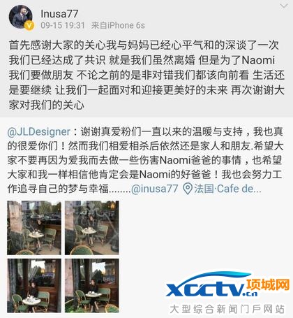 伊努萨前妻宣布离婚后不久,po文鼓励自己。翻摄微博
