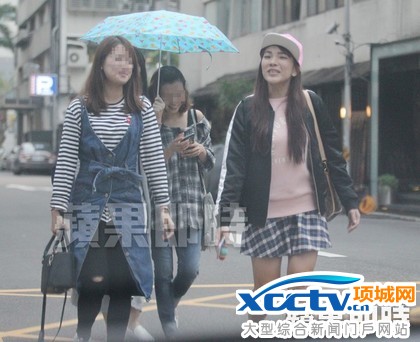 小优(右起)跟APPLE喝完下午茶,边走边聊有笑离开。特勤组摄