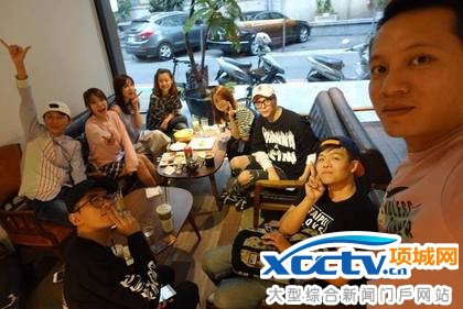 小优(左二起)在脸书上PO出跟APPLE喝下午茶的欢乐照片,同桌还有廖人帅跟吴建恆。翻摄小优脸书