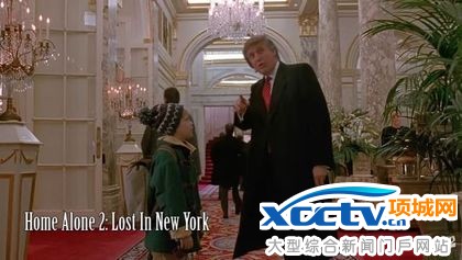 川普(右)在《小鬼当家2》为麦考利克金指路。翻摄画面