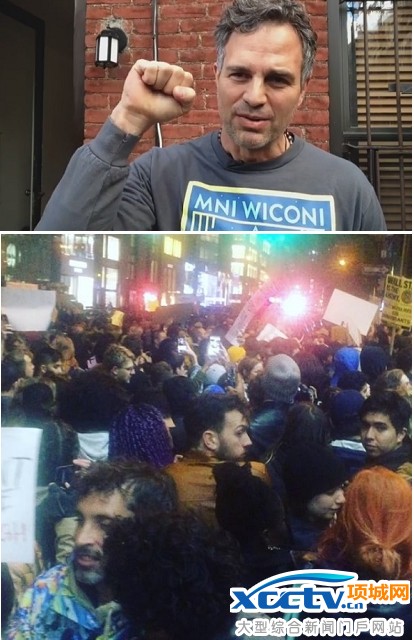 「绿巨人浩克」马克鲁法洛(上图)上街抗议,反对川普当选美国总统。翻摄马克鲁法洛IG