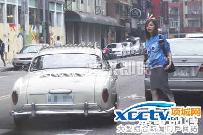 姚元浩(后)开新买的福斯古董跑车(小图)载王心凌出门,车窗透明,高调放闪。特勤组摄、合成照片