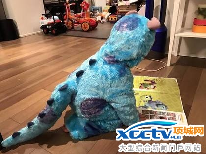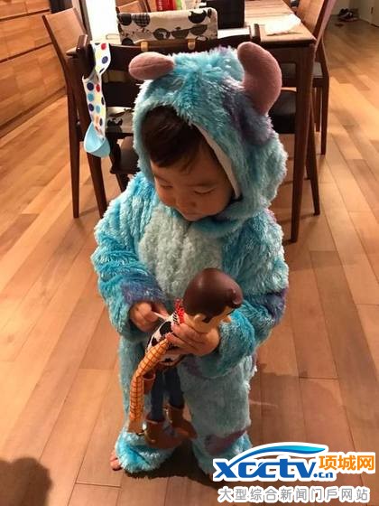 麻衣儿子穿着卡通造型服装玩耍。翻摄麻衣脸书