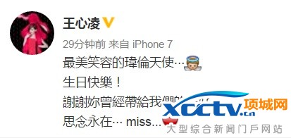 今天下午王心凌也在微博发文:「最美笑容的玮伦天使?生日快乐!谢谢妳曾经带给我们的美好? 思念永在? miss...」。