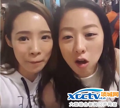事后夏语心(右)还特别带妆重回现场开直播争口气,这回被拍到吃相这幺「帅气」,夏美眉会再「重回现场」吗?翻摄夏语心脸书