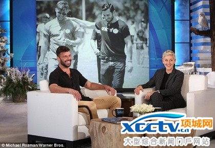 瑞奇马汀(左)在艾伦狄珍妮丝(Ellen DeGeneres)的节目上公布喜讯。翻摄网路
