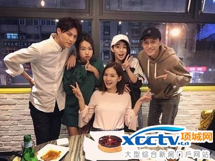 王子(左起)、ㄚ头、郭书瑶和毛弟帮曾之乔(前)庆生。翻摄曾之乔脸书