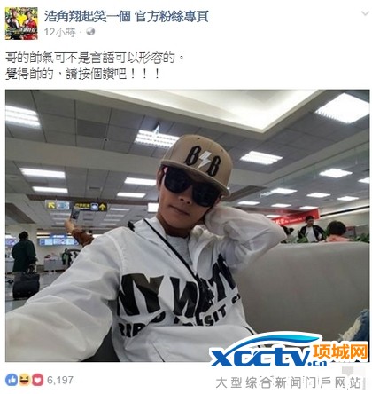 阿翔在机场戴墨镜自拍,吸引6千名粉丝讚他帅。翻摄浩角翔起脸书