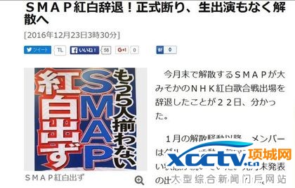 《日刊体育报》网站报导「SMAP」已辞退《红白》演出。翻摄《日刊体育报》网站