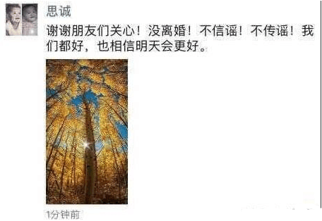 自陈思成出轨门事件之后,大家除了对陈思成的声讨,都纷纷劝佟丽娅离婚,让自己一个人过,意思是出轨的男人不值得这样将就。近日陈思成在佟丽娅朋友圈发了声后,也相继发了一条朋友圈称“谢谢朋友们关心!没离婚!不信谣!不传谣!我们都好,也相信明天会更好。”网友表示:“我不信,都不肯出来解释清楚,既不道歉也不说明,把问题全留给佟丽娅,人文章出轨,最起码还知道主动道歉,你不配做一个男人。”大家怎么看呢?