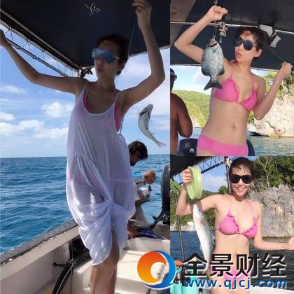 洪晓蕾大方晒比基尼,开心钓鱼。翻摄洪晓蕾脸书