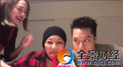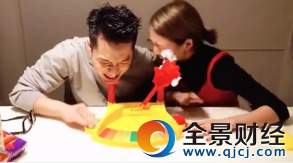 鬼鬼(右)到周汤豪家过年,挑战砸派游戏。翻摄周汤豪脸书