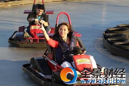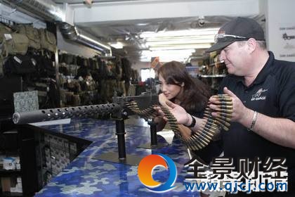 童怡祯到美国赌城作秀,体验打靶(左图)和卡丁车(右图)。黄威哲摄