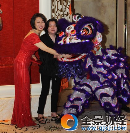 永利国际总裁Linda Chen(左)发红包,和导演邱瓈宽参与舞龙舞狮点睛仪式。黄威哲摄