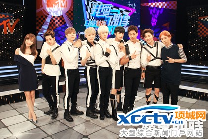 「MONSTA X」日前来台抽空参加《我爱偶像》录影,与Apple(左)和小杰(右) 相见欢。MTV提供