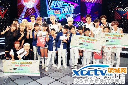 「MONSTA X」和舞蹈大赛的得奖者们合影。MTV提供