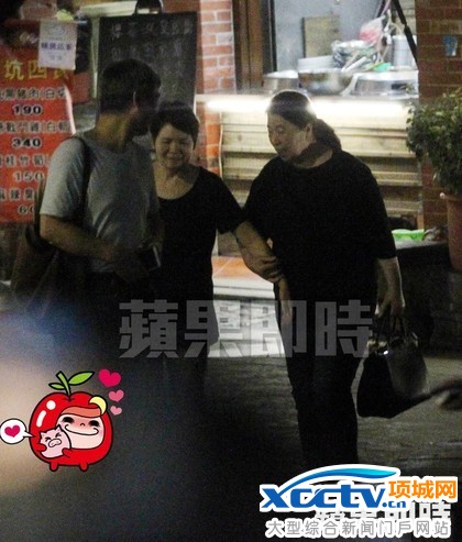 9月11日晚间,杨丞琳的妈妈(左)带李荣浩的妈妈(右二)到深坑老街游玩聚餐,同行还有杨丞琳的舅舅(右)。特勤组摄