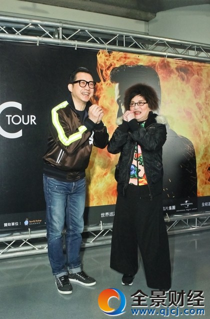 哈林(左)及张小燕来欣赏张学友演唱会。赵世平摄