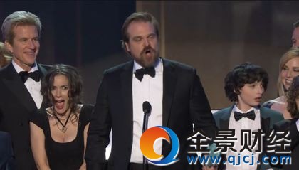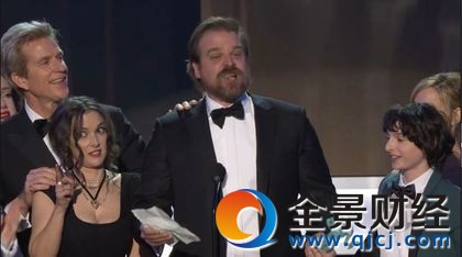 薇诺娜瑞德(左二)在美国演员工会奖颁奖典礼上表情奇特。翻摄YouTube
