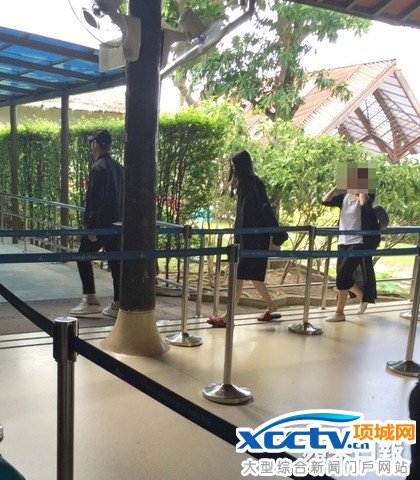 黄晓明(左)与Baby一前一后现身泰国苏美岛机场。香港《苹果日报》读者提供