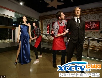 布裘婚变,伦敦杜莎夫人蜡像馆也将两人的蜡像分开,保持距离。翻摄英国《每日邮报》