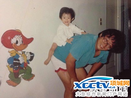郭书瑶(左)小时候喜欢让父亲揹着走。郭书瑶提供