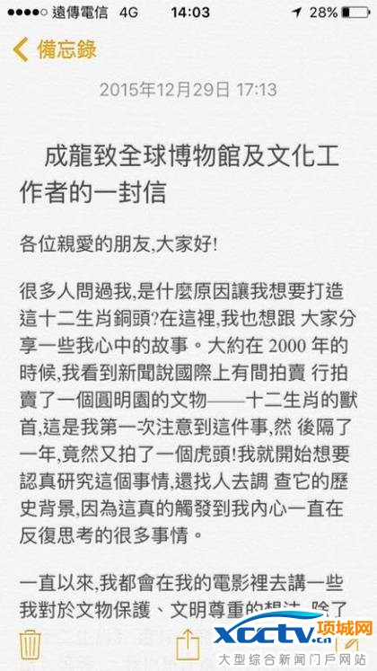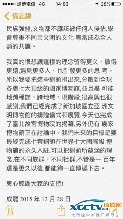 故宫南院12兽首遭拆 捐赠者成龙8字回应