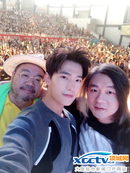 杨洋(中)在微博放上疑似在学校礼堂的照片。翻摄杨洋微博