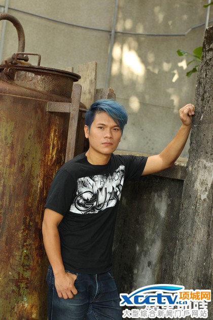 舒米恩顶着刚表演完染的蓝髮。彭欣伟摄