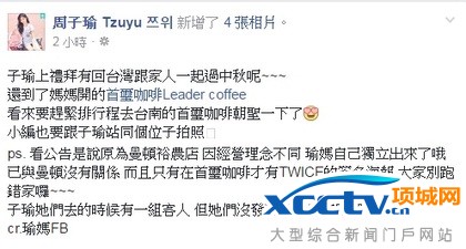 周子瑜来台过中秋消息。翻摄周子瑜 Tzuyu ??脸书