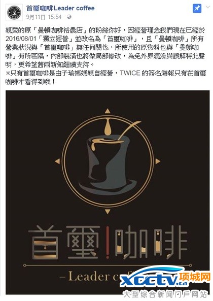 黄燕玲今年6月在台南投资的咖啡店,8月1日已独立经营。翻摄首玺咖啡Leader coffee脸书