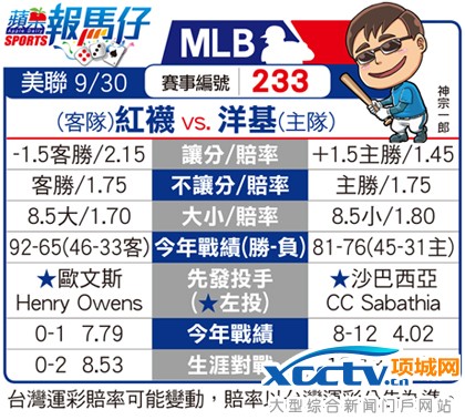美国大联盟明天有12场例行赛,台湾运彩开放红袜@洋基单场投注,洛老师运动网分析师神宗一郎推荐8.5分大分,分析如下:欧文斯本季4场先发,防御率7.79,每局被上垒率2.13,可说荒腔走板,加上生涯面对洋基共投12.2局,责失就高达12分,可说是完全压不住对方打线。沙巴西亚虽然近况不差,不过主场表现依旧摇摆,而且本季面对红袜也是10.1局掉8分,责失分比率仍旧过高。趋势方面,两队近5次交手就攻下4次大分,而且主审波特(Alan Porter)近6次在洋基球场面对红袜也判出5场大分。综合上述各点,均有利于大分开出,主推 8.5大分。