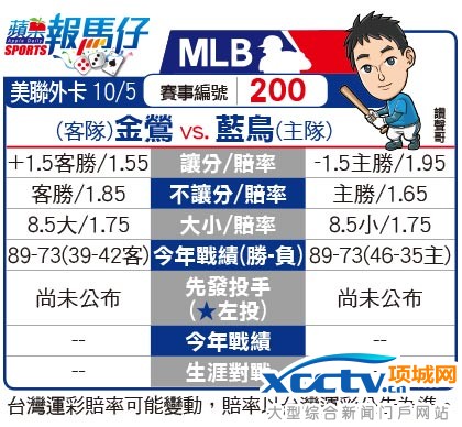 美国职棒季后赛点燃战火,台湾时间明(5)日上午8时首场赛事,为美联外卡骤死赛,多伦多蓝鸟在主场出战巴尔的摩金莺,两队到昨天为止都还未公布先发投手,不过台湾运彩开出初始参考赔率为蓝鸟队在主场让分。洛老师运动网分析师讚声哥表示,两队长程火力都很出色,蓝鸟的先发投手被全垒打率都偏高,加上金莺牛棚状况较佳,因此看好金莺在这场比赛胜出。以下是讚声哥的看法:看好金莺在外卡战有机会脱颖而出,3点分析:首先,两队都是全垒打见长的球队,投手球质是优势关键,这点可能由金莺推测先发的提尔曼(Chris Tillman)较佔上风。其次,蓝鸟目前可用先发的被全垒打率都偏高,难有压制力。最后,比照整体牛棚稳定度,还是金莺较佳。故讚声哥推荐金莺过盘。