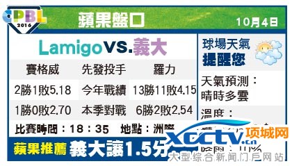 但Lamigo赛格威也不差,本季5场先发,其中3场优质表现,对战义大战绩1胜0败,防御率2.70,也很讚。两洋投对决,谁能胜出两队的打线最具关键。(体育中心/综合报导)