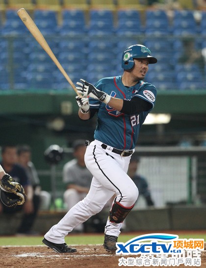 8局上:由于台南的比赛统一狮以4比2击败中信兄弟,义大只要持续领先到最后,就能自力封王,继2013年成军第1年的上半季,夺下队史第2座季冠军。不过,猿队尚未鬆手,靠着朱育贤、林承飞、锺承佑的安打,又追回1分,比数5比9。接着郭永维又安打,义大投手黄胜雄下,由倪福德登板,却被郭严文敲出左外野3分砲,双方9比9平手。21:06