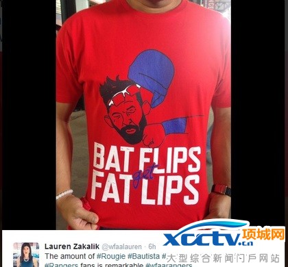游骑兵球迷穿嘲笑包提斯塔的T袖进场。 图取自推特