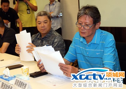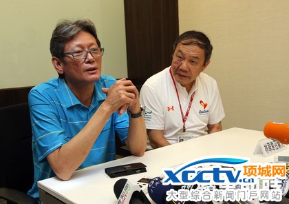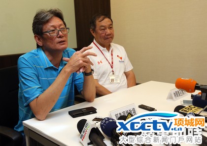 郭泰源总教练(左)向媒体说明会议结果。李鸿明摄